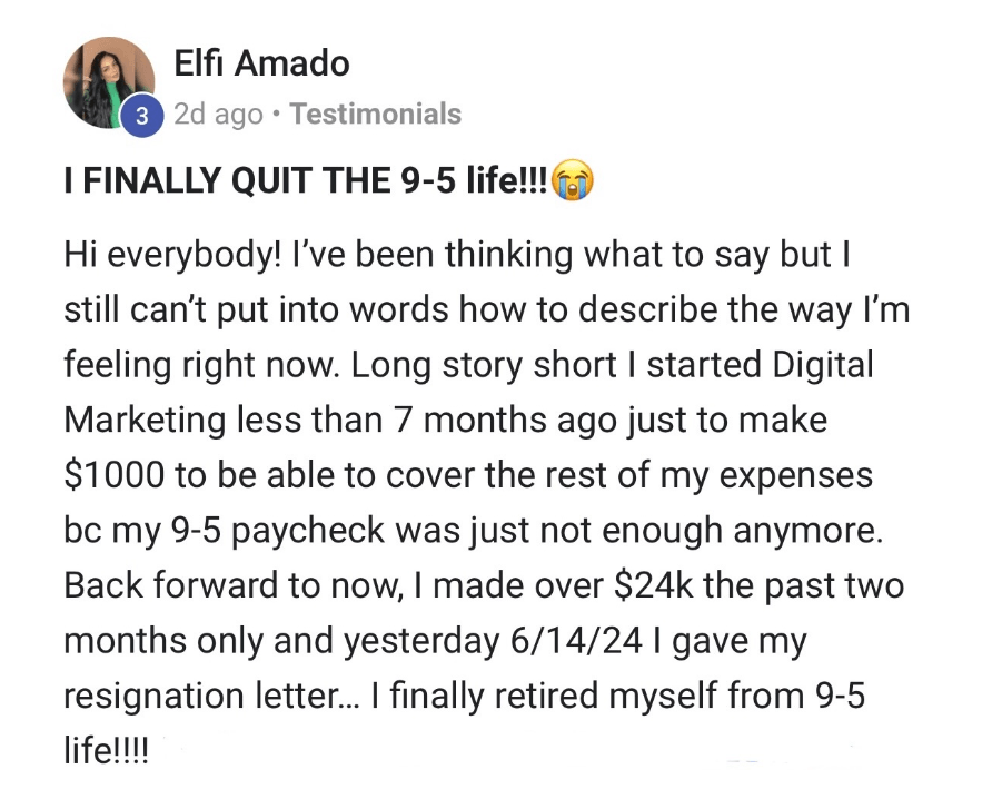 Hi! My name is Elen. I started my digital marketing journey with DWA in October 2024 — yes, just recently! After a five years in the Business industry, my life was on track until I became a mom. I had to choose between my business and my baby, and I chose my baby. This decision made me realize the importance of passive income. I discovered digital marketing and within a week of setting up my systems, my life completely changed.